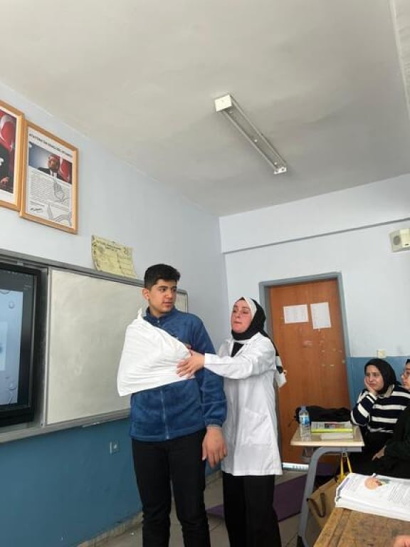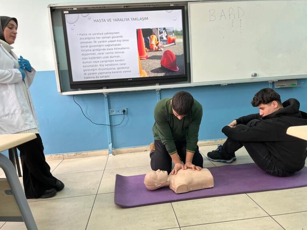 Erciş Lokman Hekim Mesleki ve Teknik Anadolu Lisesi, öğrencilerini geleceğe hazırlarken hayat kurtarma becerileriyle donatıyor! Okul Sağlığı Hemşiresi Zeynep Karaman tarafından gerçekleştirilen uygulamalı ilk yardım eğitimi, öğrencilerimize hem teorik hem de pratik bilgiler sunarak farkındalık ve yetkinlik kazandırdı.